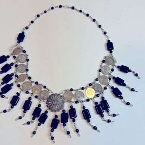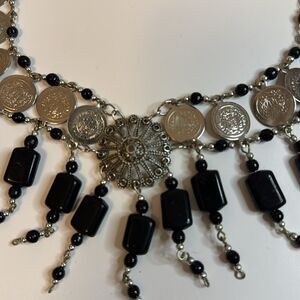 OOAK Handcrafted Multimedia Black/Silver Statement Necklace Lobster Clasp