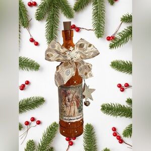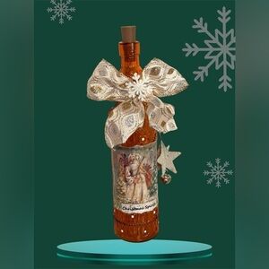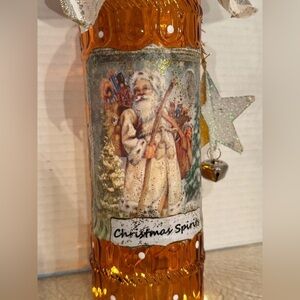 OOAK Hand-decorated Amber Santa Lighted Wine Bottle Holiday Decor