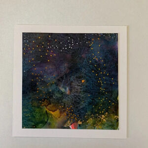 Add a special touch to your correspondence and stationery with this exceptional, artisanal card set. This collection of original handmade abstract watercolor blank cards are perfect for any occasion - use them as thank you notes, birthday cards, or simply as thoughtful gifts. Each 3.25" x 3.25" card in this set of 6 is a one-of-a-kind work of art, featuring vibrant washes of rainbow watercolors with 24K gold leaf accents. Packaged in a protective glassine envelope, the set comes with 6 matching 3.5" x 3.5" white envelopes, one for each unique card.
