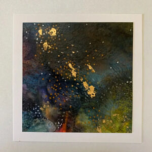 OOAK Handmade Abstract Watercolor Card Set - 6 Blank Note Cards 24K gold leaf