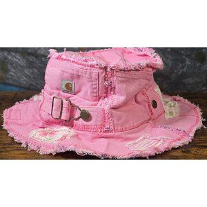 OOAK Magnolia Boho Indie Pink Carhartt Upcycled Bucket Hat Adjustable M 22"-23"