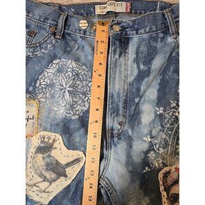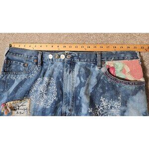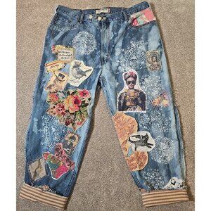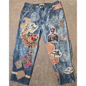 OOAK Magnolia Boho Reworked Levi Jeans Upcycle Indie Cat Boyfriend Adjusts 36-42