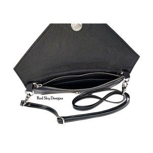 - Includes adjustable Leather Cross Body Strap