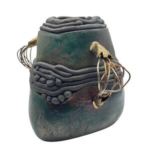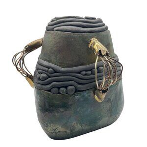 OOAK Raku Pottery Brass Art Vase Belly Dancer Series by Martha Prentiss 10"x8.5"