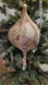 From there, the ornament is sprayed with fixative, covered in clear sparkle glitter, trimmed with edging (some vintage) and embellished with a beaded top and a vintage chandelier crystal drop at the bottom.