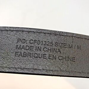 OOBE Black Leather Belt. Women's size Medium, 1 1/4 wide, 38 long Overall, Missing Loop, but there has never been one, so... maybe there's not supposed to be one?