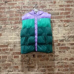 OOF Colorblock Oversized Puffer Vest in Green Purple Size 44 US Size 8