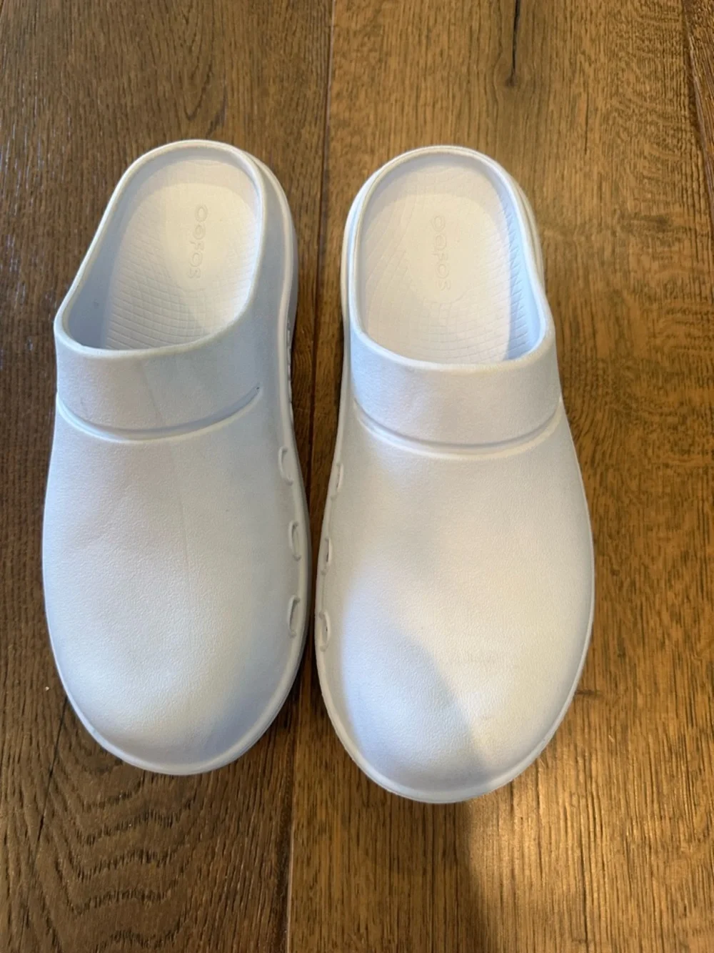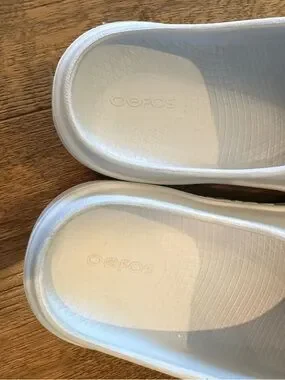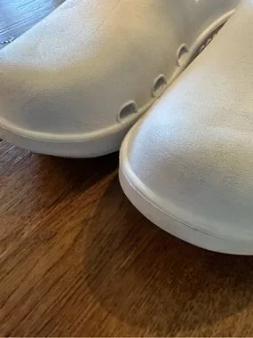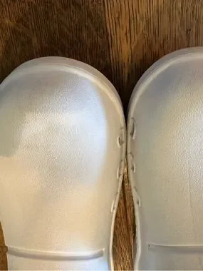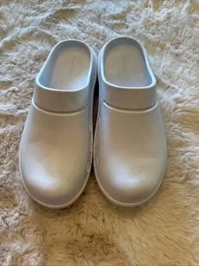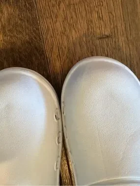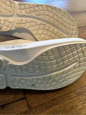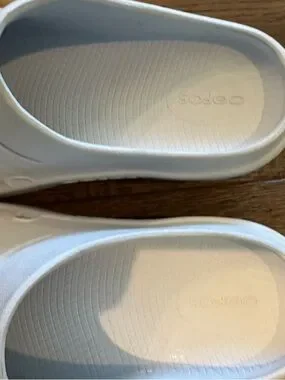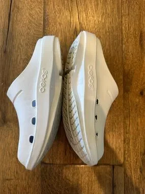 OOFOS clog style shoes , white , women size 7 men 5 , slight rubbing noted otherwise very good condition. All sales final