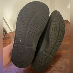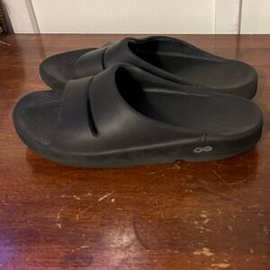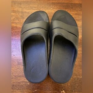 Comfortable OOFOS slides. Sleek black design. Ideal for casual wear. SO comfy!