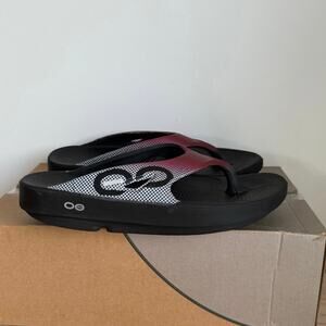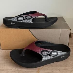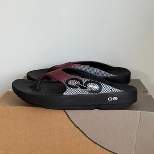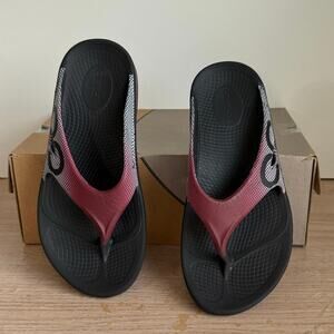 OOFOS Black/Burgundy Unisex Sandals Slip On Flip Flop- Men 6- Women 8
