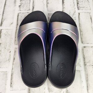OOFOS OOahh Luxe Slide Women's US 8 EU 39 Metallic Pink Purple Comfort Sandals