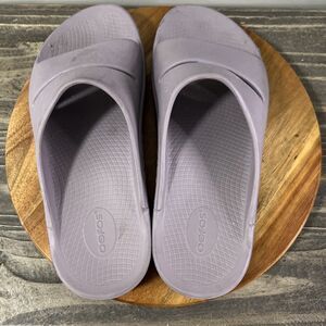 OOFOS OOahh Men’s Size 13 Sport Flex Recovery Slide Grey Purple Sandals