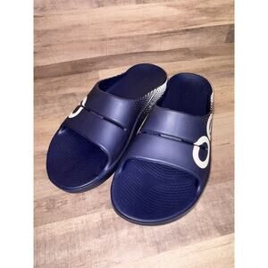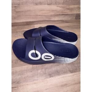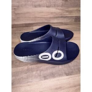 OOFOS OOahh Men's sz 9 Woman 11 Navy Matrix Comfort Slides Cushioned Sandals