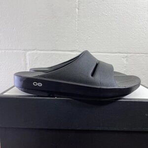 OOFOS OOahh Recovery Sandals Slide Black Open Toe Slip On Men's 9 Women's 11