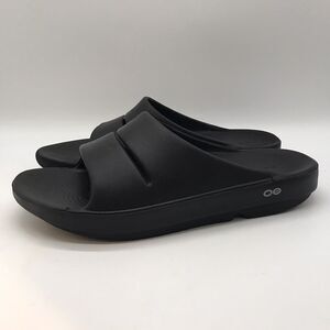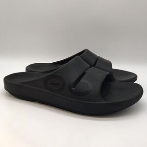 OOFOS OOahh Slides. Unisex size Men's 11 or Women's 13, Black, Recovery Comfort Sandals. An evolution of the OOFOS OOriginal Recovery Footwear, featuring an agile OOfoam strap for additional support and comfort.
