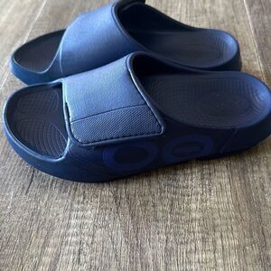 OOFOS OOahh Sport Flex Sandal Slides Sz M4/W6 EUR37 Navy Slip On Comfort Casual
