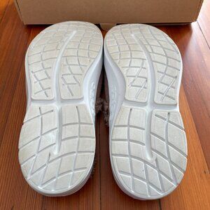 Oofos recommends buying a half size up in this style. I wear 7.5 med and these fit well without socks.