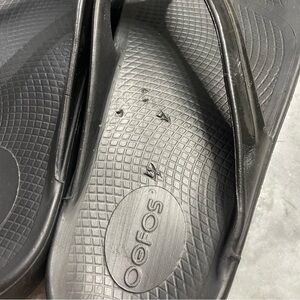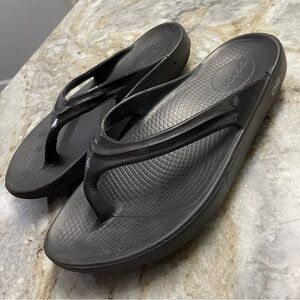 OOFOS OOlala Limited Shiny Black Thong Flip Flop Recovery Sandals Women’s 9