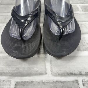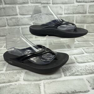 OOFOS OOlala Luxe Black Shiny Flip Flop Thong Recovery Sandals Women's Size 10