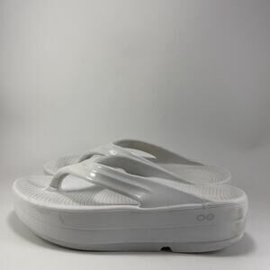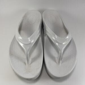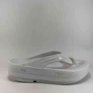 OOFOS OOmega OOlala Stack Womens Size 9 White Recovery Flip Flops Thong Sandals