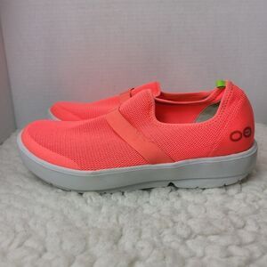OOFOS OOmg Low Top Comfort Recovery Shoes Unisex W 12 M 10.5 Coral Orange Good Condition See Pictures For More Details.