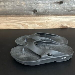 OOFOS Post Run Sports Recovery Thong Sandal Women’s 10 Men’s 8 Black Flip Flop