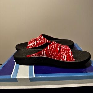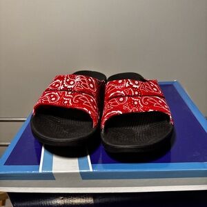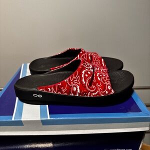OOFOS - Red Bandana Pattern Slides