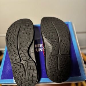 Stylish slides with a red bandana pattern. Comfortable and trendy. Every pair of OOFOS features our patented footbed that cradles and supports arches, paired with OOfoam™ to absorb 37% more impact than traditional foam footwear