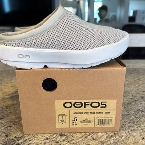 OOFOS OOCOOZIE SPORT MULE. SIZE 5 , like new condition , sold with box. Wore a couple times. Very comfortable. They sell for $115 brand new see in photos, thank you. Pool beach after workout house shoes