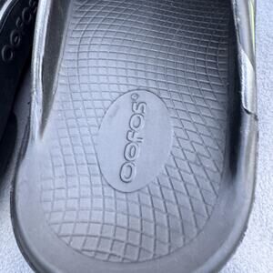 Logos/Markings: OOFOS embossed on footbed and side; large OO graphic on straps