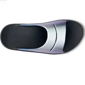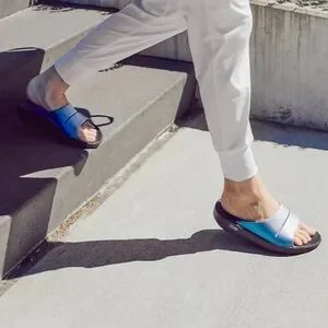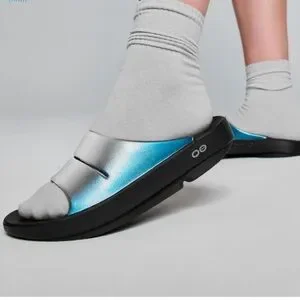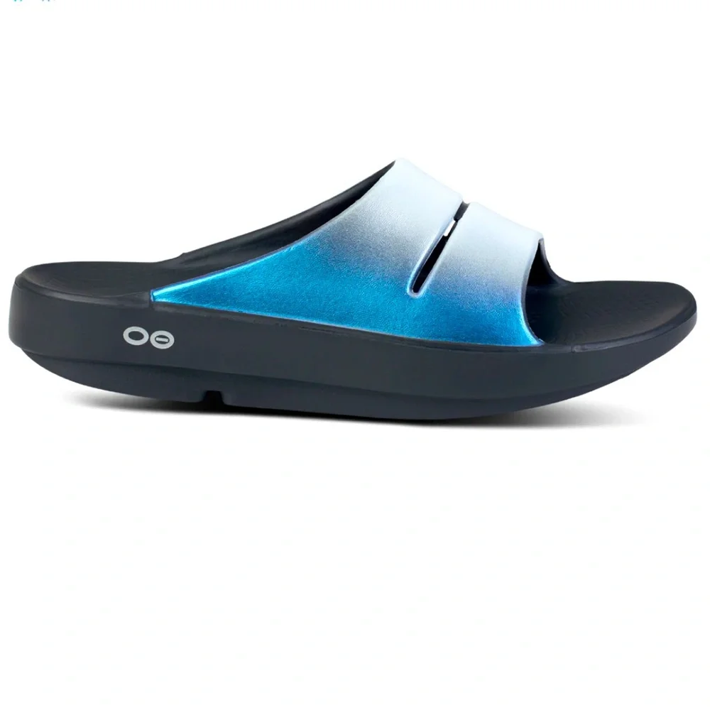 Luxe: Vibrant treatments and prints bring some extra fun and expression to OOFOS’ classic slide silhouette.