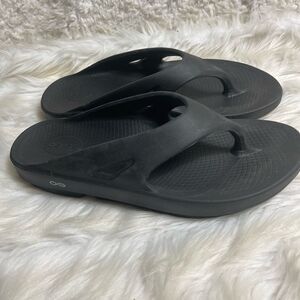 OOFOS Unisex Black Rubber slip on thong sandals Men SZ12 Women SZ14
