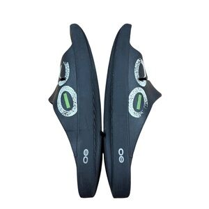OOFOS Unisex Ooahh Sports Slide Sandals in black with green accents Men’s 8/W 10