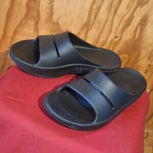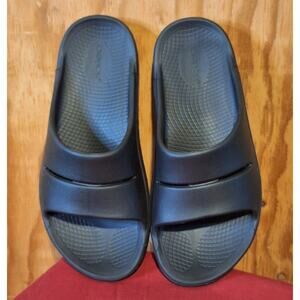 These OOFOS recovery slides are in Excellent Preowned Condition and have only been worn 2x! I bought them new from the OOFOS website and unfortunately, I can't wear them. I have a fused ankle and they are not working too well for me. I can tell that if I had a normal situation, I would love them. Everyone I know that wears them really likes them a lot. These run a full size small. I usually wear an 8, but I had to return the first pair I bought, a size 8, for a size 9. Retail $59.95.