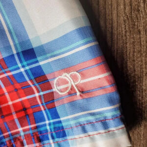 Embroidered Op logo on leg