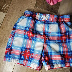 OP Baby Boy Board Shorts Swim Trunks Blue Red White Plaid Size 18m NWOT