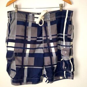 OP Board Shorts mens 32-34 Blue Cargo Pocket Stretch Swim Trunks men