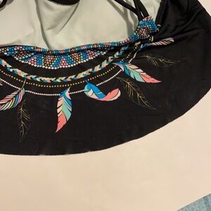 Super cute with feathers and multiple straps. Top has done white marks but I’ll try to re-wash and see if they come out. Otherwise great shape!