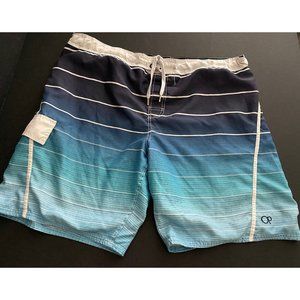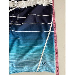 OP Fully Lined Mens Swim Trunks Shorts Striped Ombre Size 2XL Plus 44-46 Logo