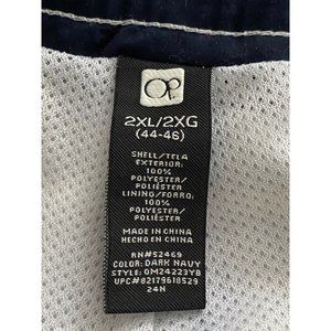 Take a dip in style with these OP swim trunks for men in a colorful ombre striped pattern. The tie closure and flat front design provide a comfortable fit for casual occasions, and the stretch fabric ensures ease of movement. These Bermuda-style shorts feature a logo accent and are made of polyester material with full lining. Available in size 2XL and waist size of 46 inches, these swim trunks are perfect for any beach or pool day.