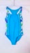 OP Girls 1-Piece Aqua Swimsuit Racerback Polka-Dot Bubbles Keyhole M Sz 7-8