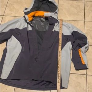 Great quality Jacket, Tested for performance from a non smoker home approximately 30” Long, 27” armpit to armpit. double zippers front