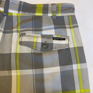 .OP Men's Golf Shorts “OP Flex” 4 Way Stretch Plaid Grey Yellow Men’s Size 34