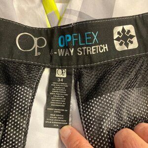 OP Men's Short's with OP Flex 4 Way Stretch Plaid Grey and Yellow Size 34. A cool colorful design of colors that will move with your golf swing, or any other activity. Shorts are in excellent preowned condition. See photos for condition & for your consideration.