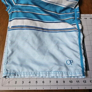 OP Men’s Medium 32 34 Swim Shorts Blue Surf Board Trunks Pockets Striped Grey