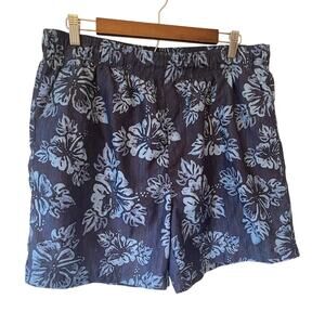 OP Men's Medium Board Shorts Blue Floral Swim Trunks Beach Vacation Travel Lined