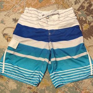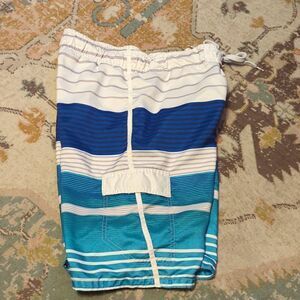 OP Men’s Blue/Gray/White Striped Lined Board Shorts Swim Suit Small