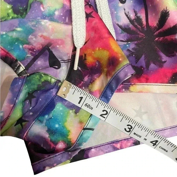 OP Ocean Pacific Neon Multicolor Palm Tree Unlined Swim Shorts Lisa Frank Vibes Juniors size XL(15-17)