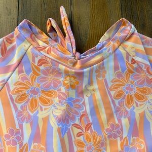 * long-sleesleeved, one-piece swimsuit with a floral retro floral.