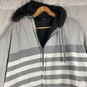 OP OCEAN PACIFIC MENS JACKET L GRAY STRIPE SHERPA FLEECE HOODIE ZIP SWEATSHIRT